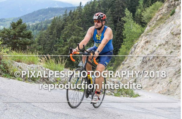 Quelques mots échangés et je poursuis à mon allure, mais me fait aussi doubler par certains. Je suis un peu surpris de me faire doubler, mais c’est vrai que d’habitude je suis dans les tous derniers après la natation, ce qui n’est pas le cas aujourd’hui. Je me souviens qu’il y a 2 ans j’avais souffert à la fin de ce col, mais la chaleur était toute autre. Là avec les conditions du jour (toujours sans pluie), cela se passe beaucoup mieux. Je descends le col de Chaussy en faisant attention (j’avais failli chuter la dernière fois), car il y a notamment 3-4 virages vraiment délicats.
