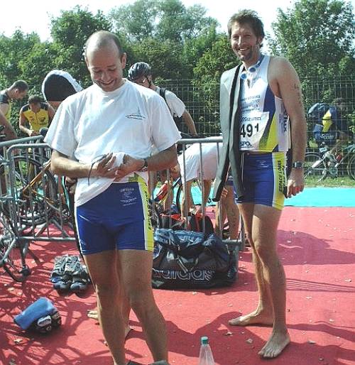 Sourire de rigueur pour Christophe (Embrunman number one cette année) et Hubert (Vaulxman number 491). |