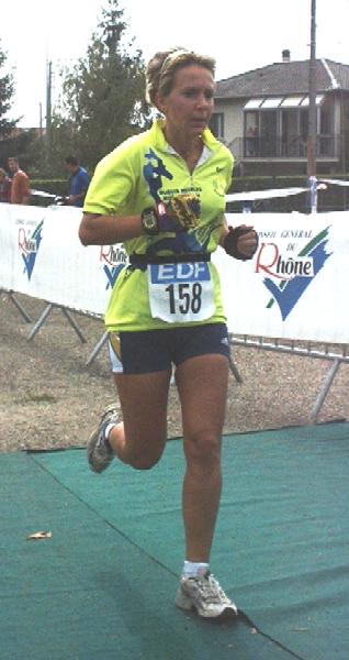 Malgré le regard déterminé, la foulée ample et les gants de l'Ardéchoise qu'elle n'a jamais courue, Valérie échouera malheureusement au pied du podium féminin... mais 1ère de sa catégorie d'âge. |