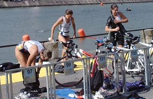 Les filles en pleine transition après 750 mètres dans la Saône. |
