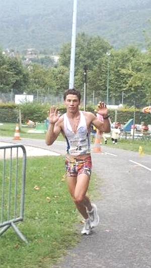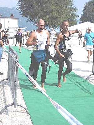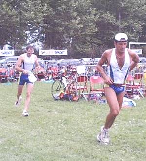 Départ de la course à pied : Claudio Penzo emboîte le pas à Christian Gailhot. Encore 20 km pour s'expliquer... et tenter de passer sous les 5 heures !