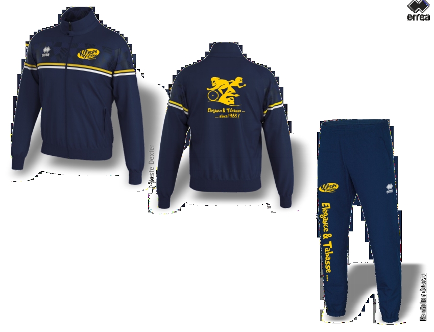 Le survêtement est de la marque ERREA, le modèle et le tarif définitif reste encore à définir, mais ne devrait pas dépasser 50 € pour l’ensemble « veste + pantalon » (le devis est en cours); Dès que la maquette et devis seront validés, nous mettrons à jour l’article sur le forum mais il sera jolie forcément sans trop de jaune ahahah !!!