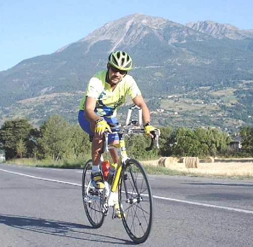 Faux plat de Baratier (km 45), Hervé est bien lancé... mais un clou attend ses pneus 25 km plus loin. | |