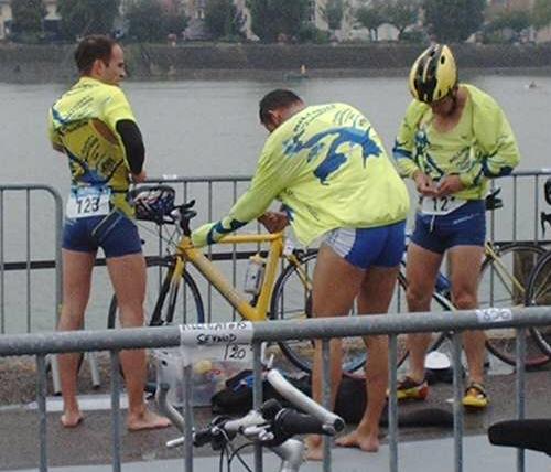 Une transition un peu longue mais il faut s'habiller avant d'affronter les 18 km de vélo sous la flotte... |
